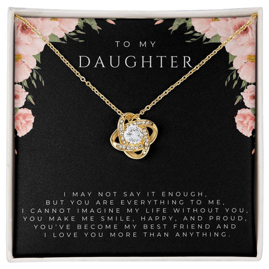 To My Daughter Interlocking Hearts Necklace (White and Yellow Gold)