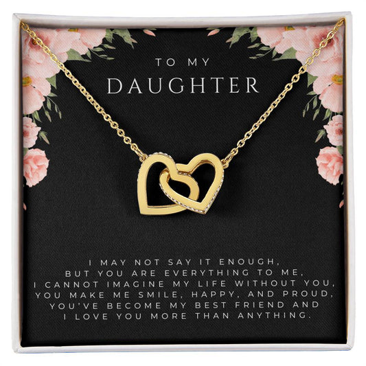 To My Daughter Interlocking Hearts Necklace (White and Yellow Gold)